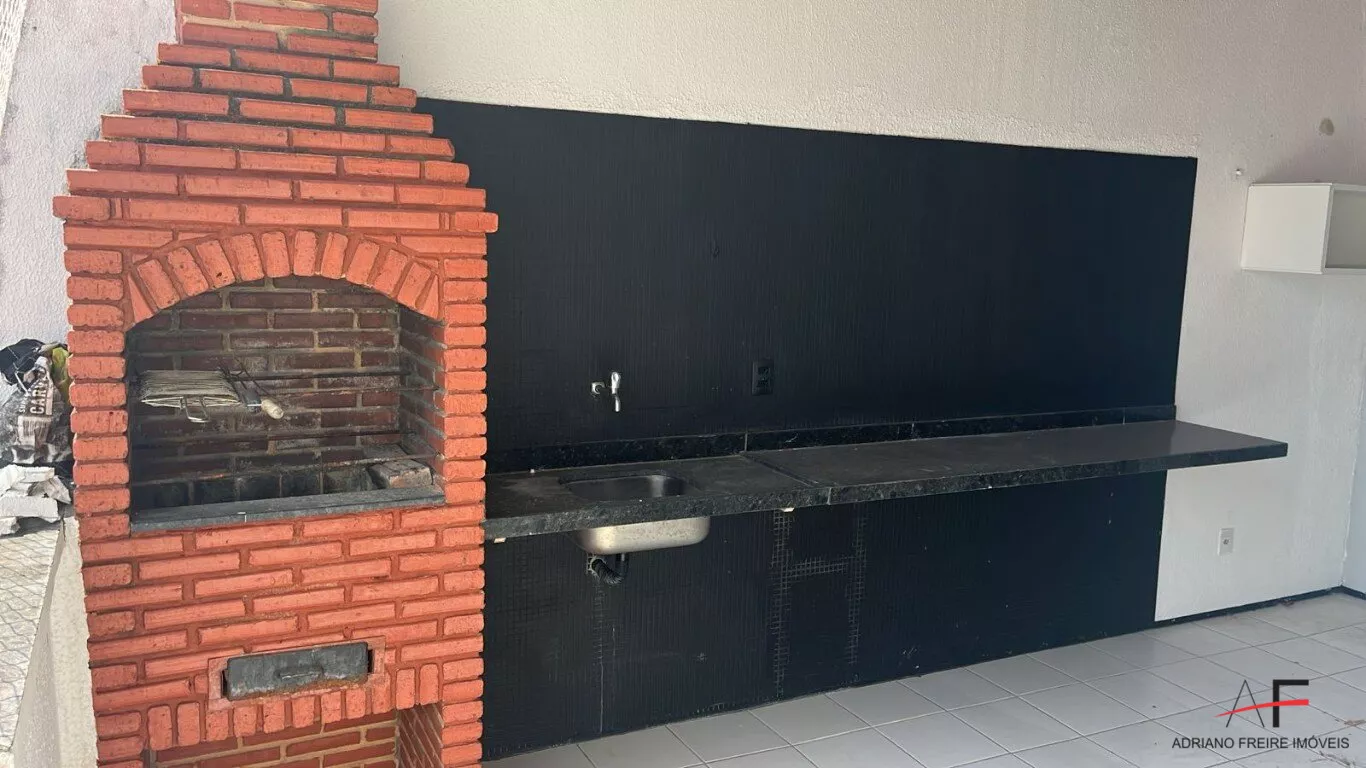 Casa Triplex com 3 suítes, sala ampla, varanda, cozinha com armários, área de serviço, banheiro social, quintal e 3 vagas de garagem.