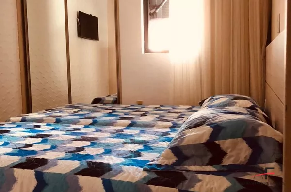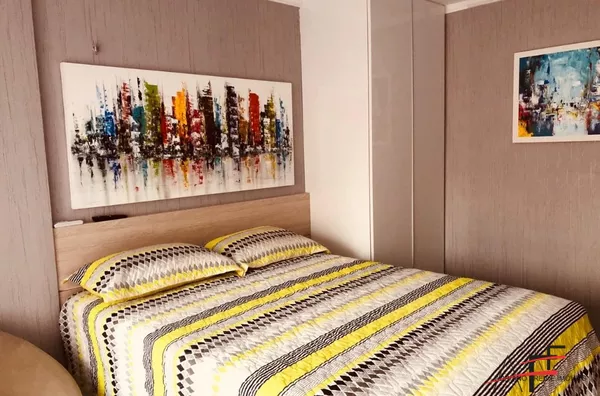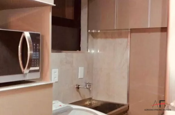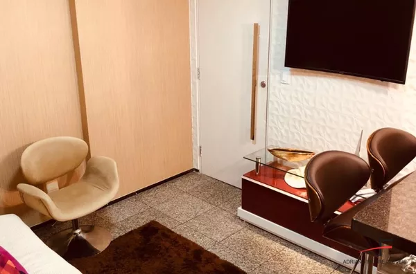Apartamento mobiliado com 2 quartos, sala, cozinha, banheiro social, área de serviço e 1 vaga de garagem.