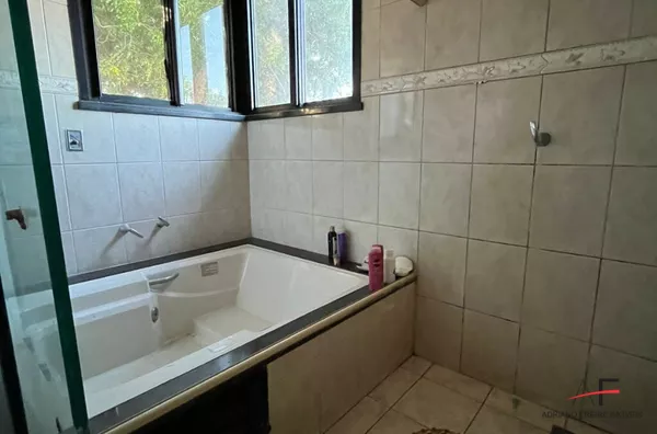 Casa Duplex com 5 suítes todas com closet (sendo a suíte master com hidro), varanda no andar superior e inferior, sala de estar, sala de jantar, lavabo, varandão, deck com piscina e 5 ou mais vagas de garagem.