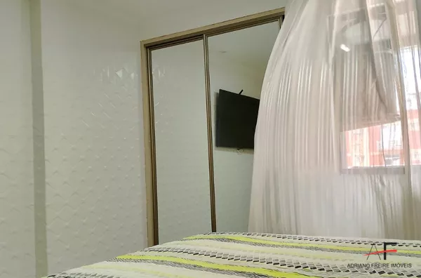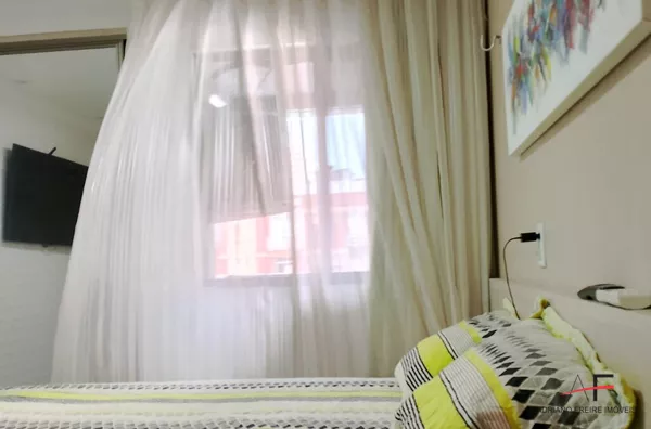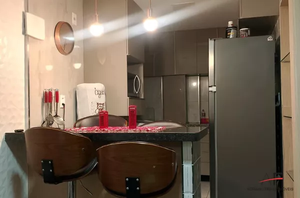 Apartamento mobiliado com 2 quartos, sala, cozinha, banheiro social, área de serviço e 1 vaga de garagem.