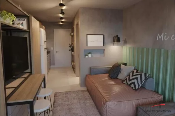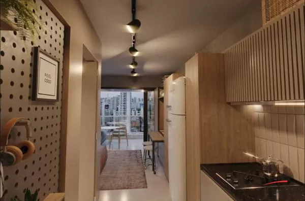 Loft com quarto/sala, cozinha, 2 varandas amplas e 1 vaga de garagem.