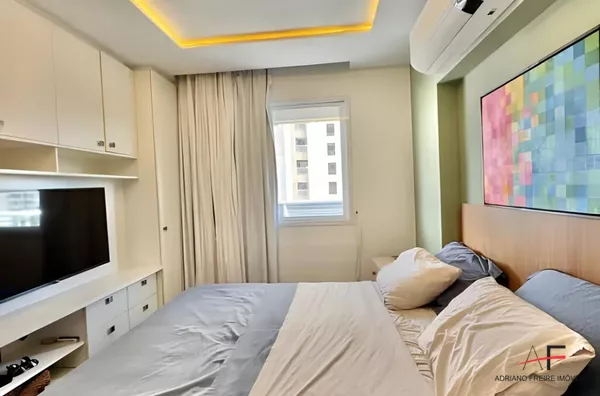 Apartamento com 70m², 2 quartos (sendo 1 suíte), sala ampla, varanda gourmet, cozinha funcional e 2 vagas de garagem paralelas.