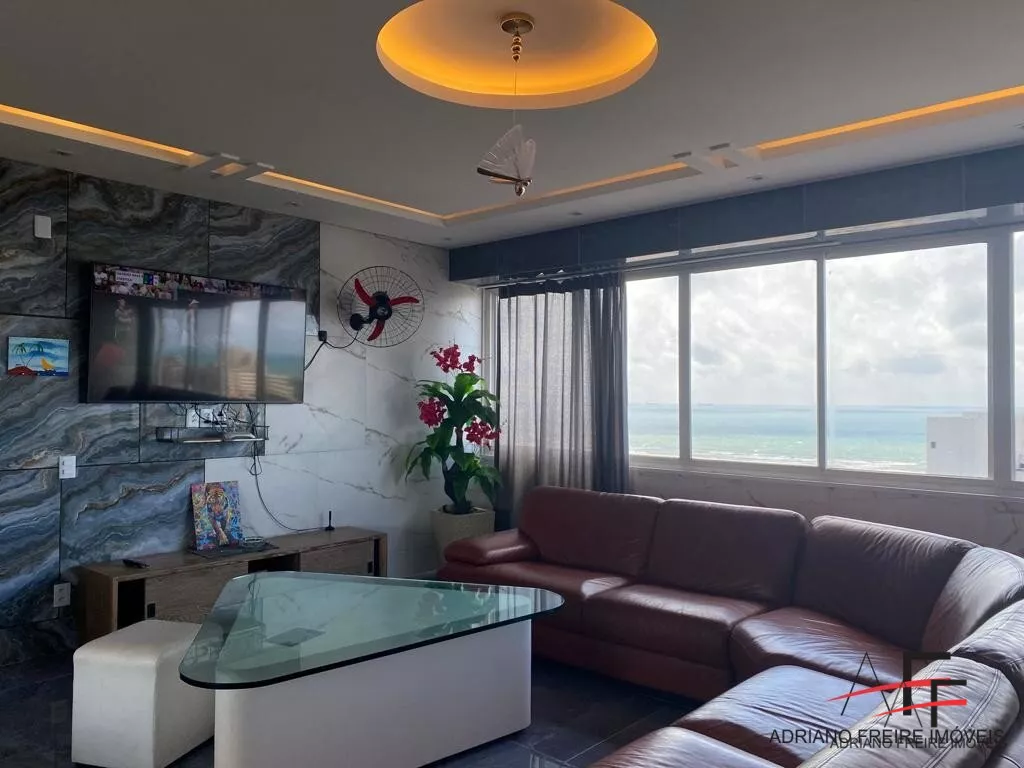 Piso inferior com 4 quartos ( sendo 2 suítes), sala ampla de estar e jantar, cozinha com despensa, quarto de serviço, área de serviço e uma belíssima vista mar.