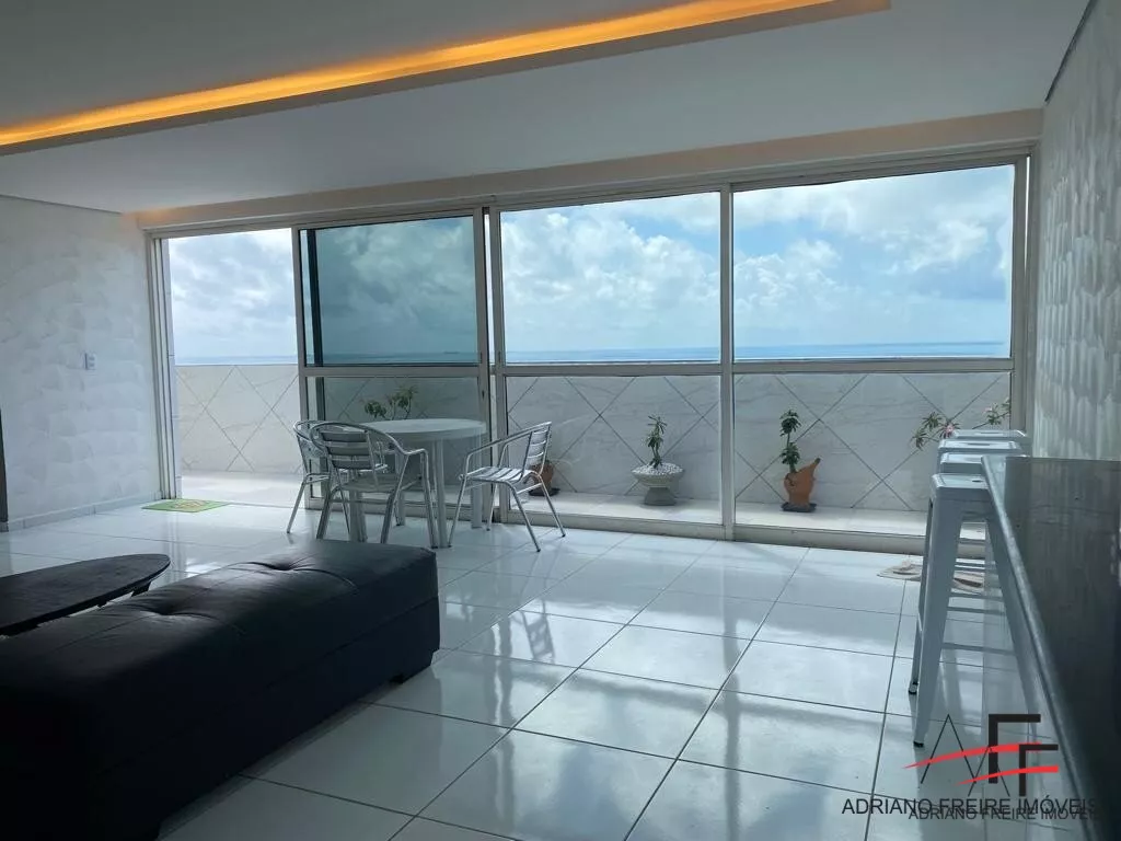 Piso superior com 1 suíte, sala ampla e cozinha americana, banheiro social, 2 varandas ( sendo 1 com deck, piscina e banheiro e 1 com vista mar incrível).