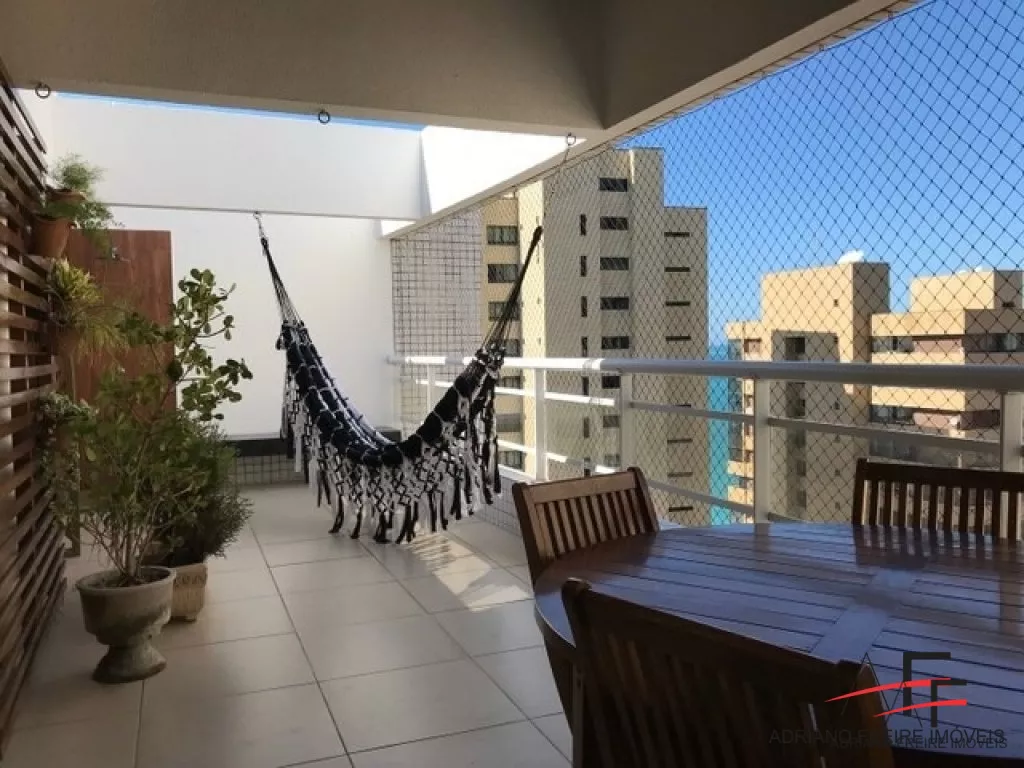 Cobertura mobiliada com 3 suítes, sala, varanda com churrasqueira e incrível vista mar, cozinha com todos os utensílios, área de serviço e 2 vagas de garagem.
