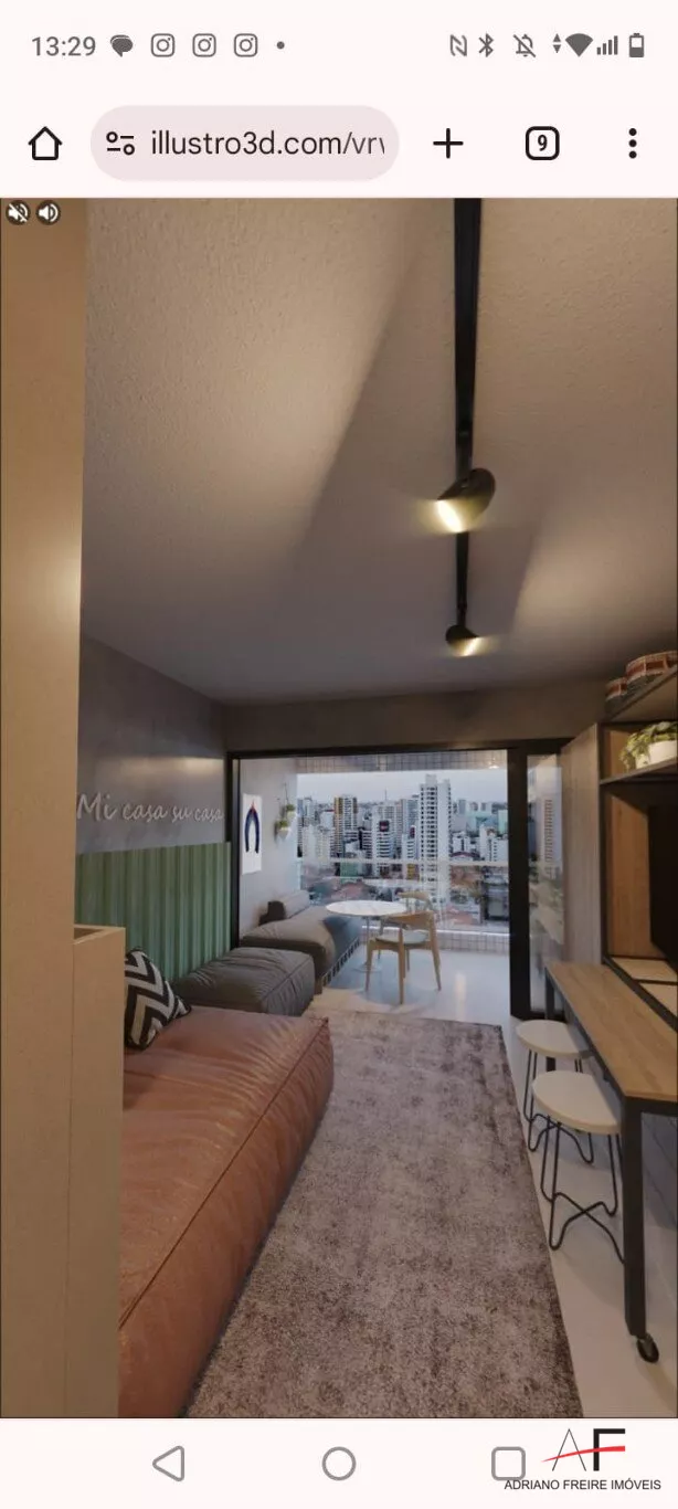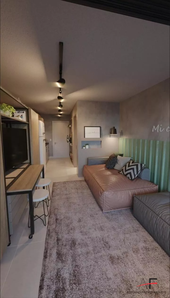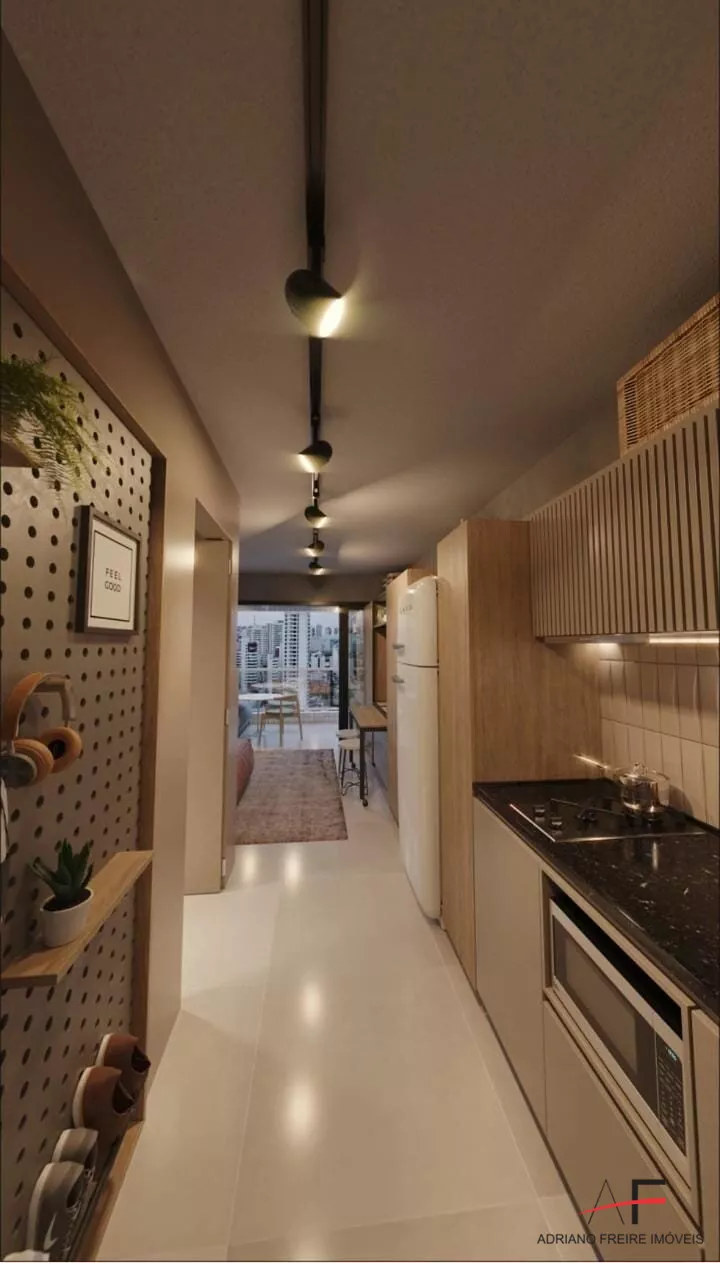 Loft com quarto/sala, cozinha, 2 varandas amplas e 1 vaga de garagem.
