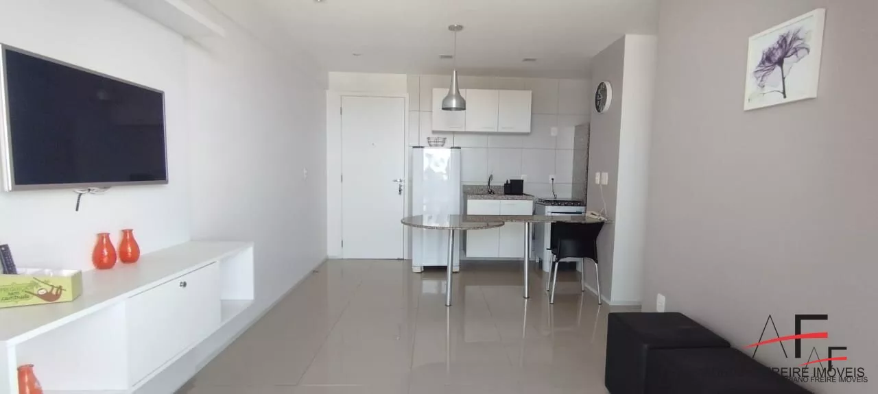 Apartamento mobiliado com 2 quartos (sendo 1 suíte), sala ampla, varanda ampla, cozinha americana, área de serviço e 1 vaga de garagem.