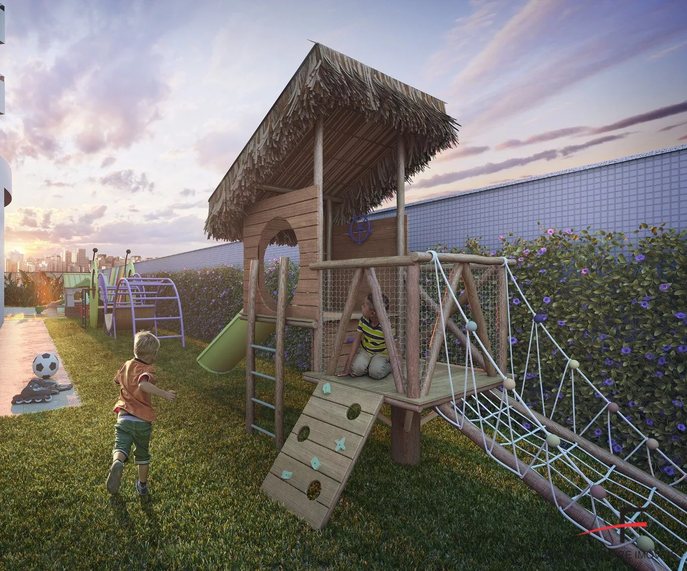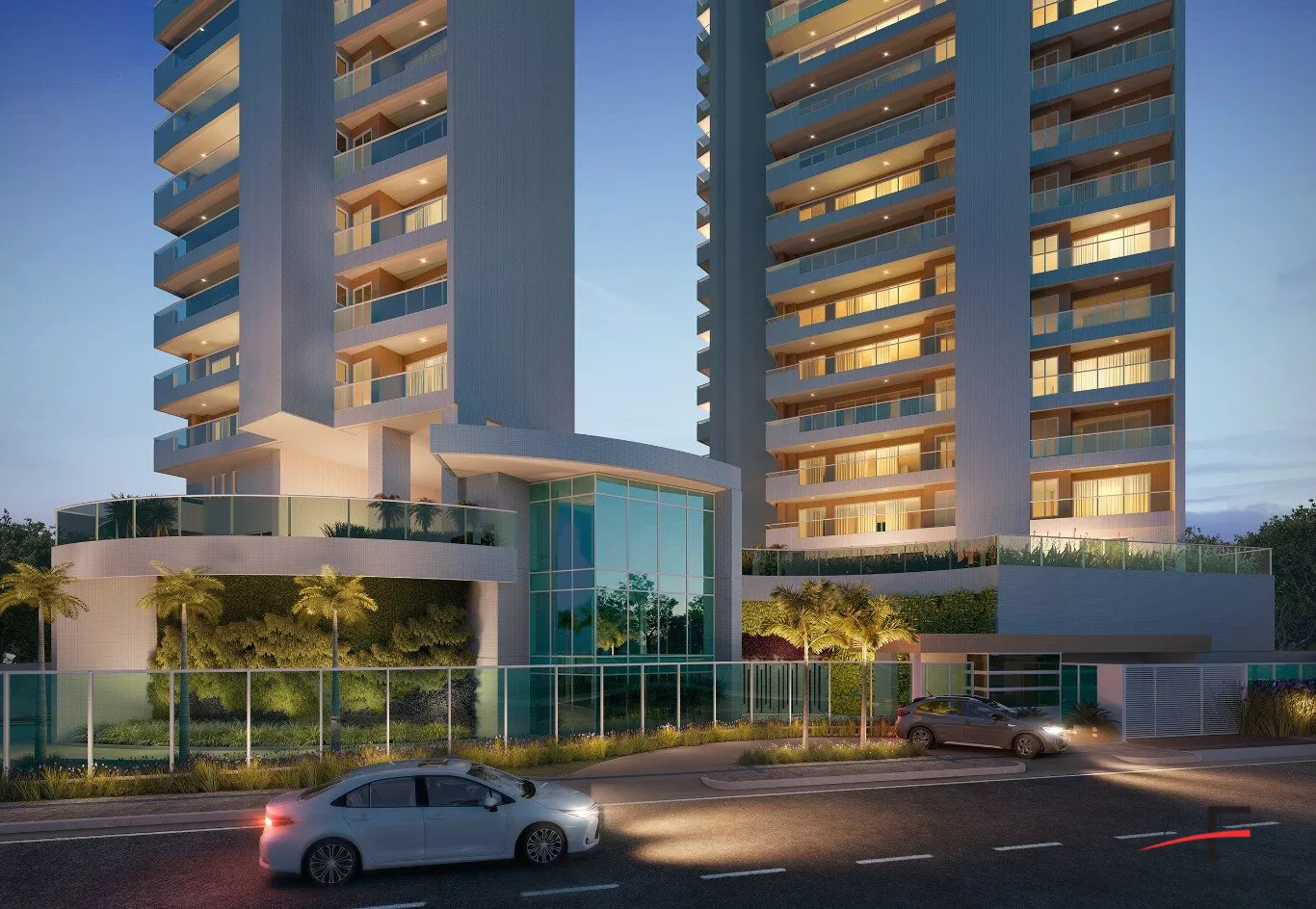 Port-cochère e Espaço Delivery com entrada de pedestre e eclusa, Mirante, Lounge, Kids Club, Hall Social em cada torre (Torre Piazzolla e Torre Gardel), Praça das Águas, Playground, Fitness, Sauna, Piscina adulto com raia, piscina infantil, prainha, deck molhado, Espaço Gourmet com churrasqueira, Salão de Festas, Quadra Recreativa, Pet Place e muito mais.