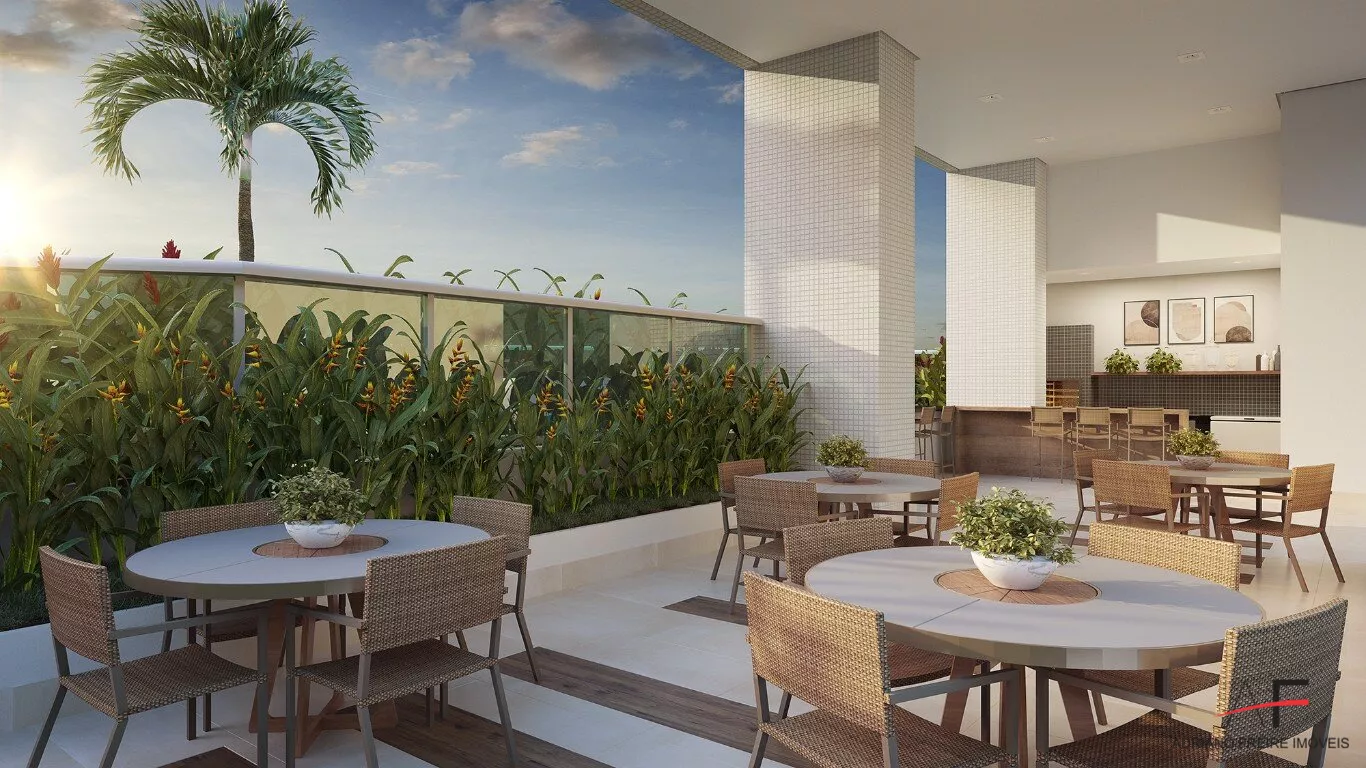 Apartamento com 141,05m², sala ampla para 2 ambientes, varanda gourmet integrada, 3 suítes, cozinha com área de serviço, quarto de serviço com banheiro, lavabo e 3 vagas de garagem.