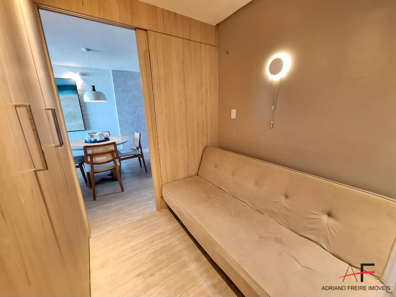 Apartamento com 2 quartos, sendo 1 suíte, Varanda com vista para o mar, Sala ampla, ideal para dois ambientes, Cozinha com armários, Banheiro social e 1 vaga de garagem.